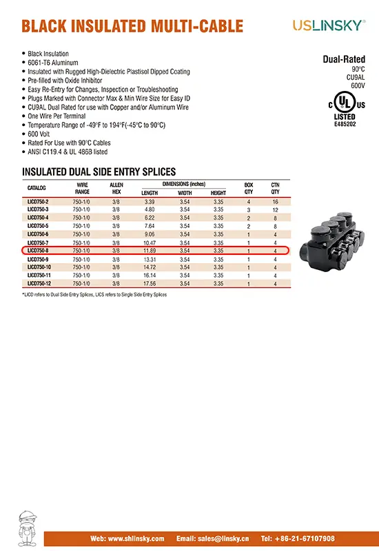 CU9AL Dual Rated for use with Copper and/or Aluminum Wire