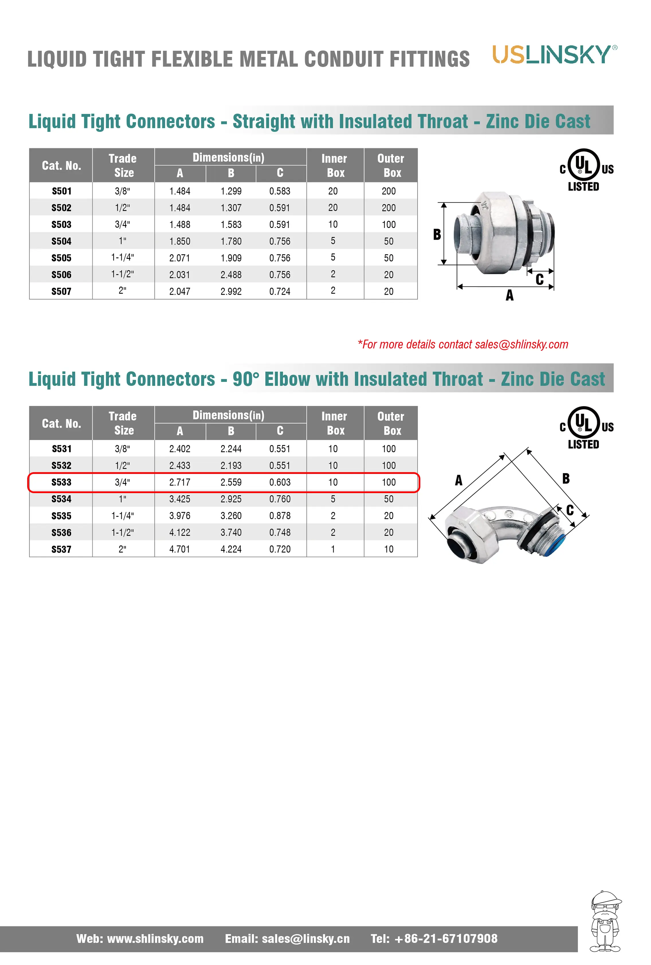 Liquid Tight Connectors- 90° Elbow with Insulated Throat - Zinc Die Cast
