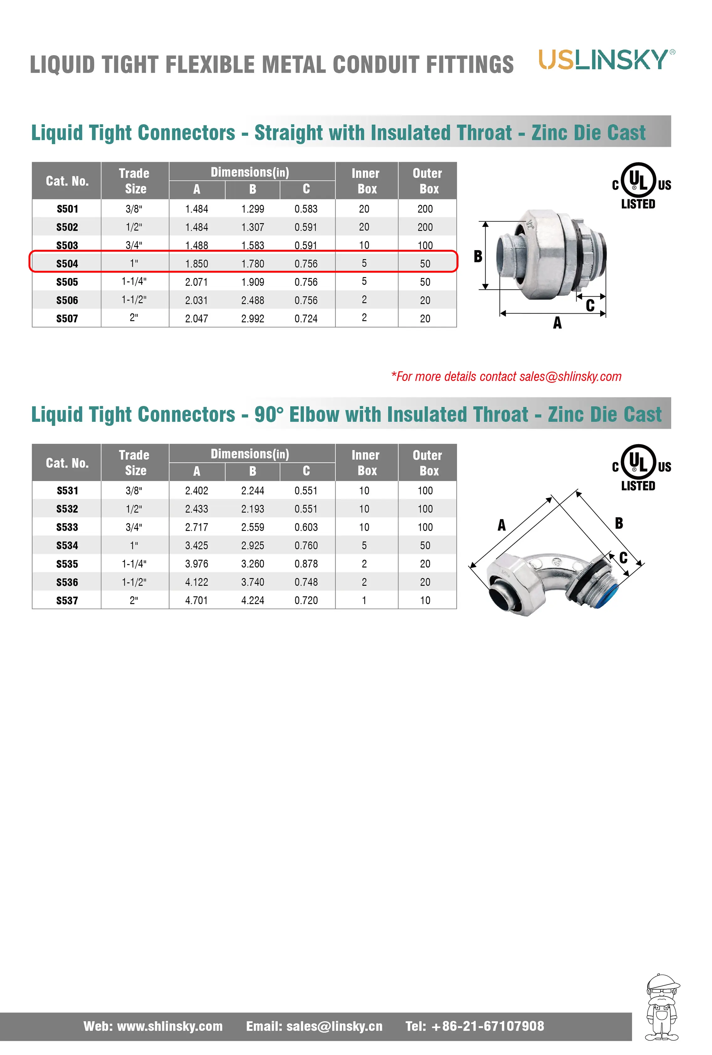 Liquid Tight Connectors - Straight with Insulated Throat - Zinc Die Cast