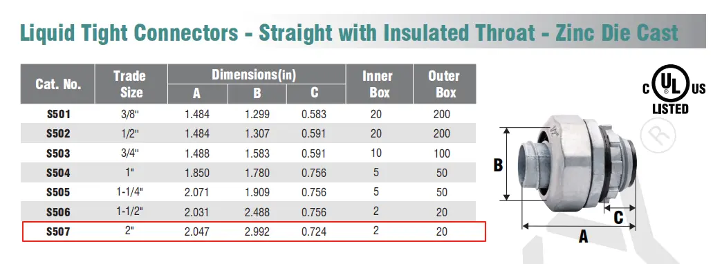 Liquid Tight Connectors - Straight with Insulated Throat - Zinc Die Cast