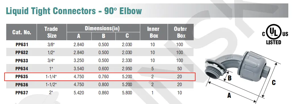 Liquid Tight Connectors - 90° Elbow