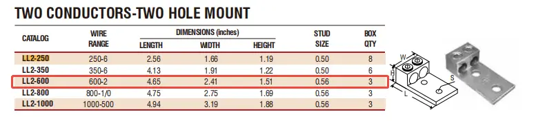 | #600-2 ALUMINUM MECHANICAL LUGS TWO CONDUCTORS-TWO HOLE MOUNT |