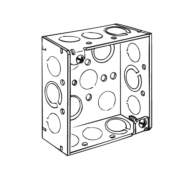 | 4" SQUARE BOX-WELDED WITH CONDUIT KO’S 1-1/2" DEEP Description: Raised Ground Side Conduit: (8) 1/2", (4) 1/2"-3/4" Bottom Conduit: (2) 1/2", (2) 1/2"-3/4" |