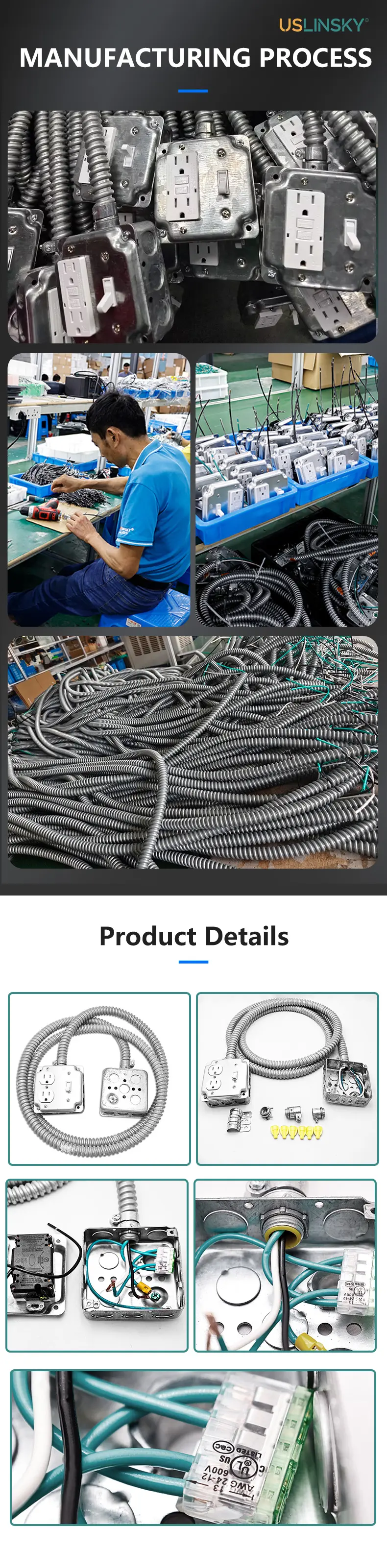 Shanghai Linsky Outlet Box Kit Whip 15 AMPS 1/2'' Flexible Metal Conduit 6' Length GFCI