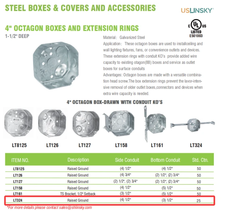 4" OCTAGON BOX-DRAWN WITH CONDUIT KO’SMaterial: Galvanized Steel