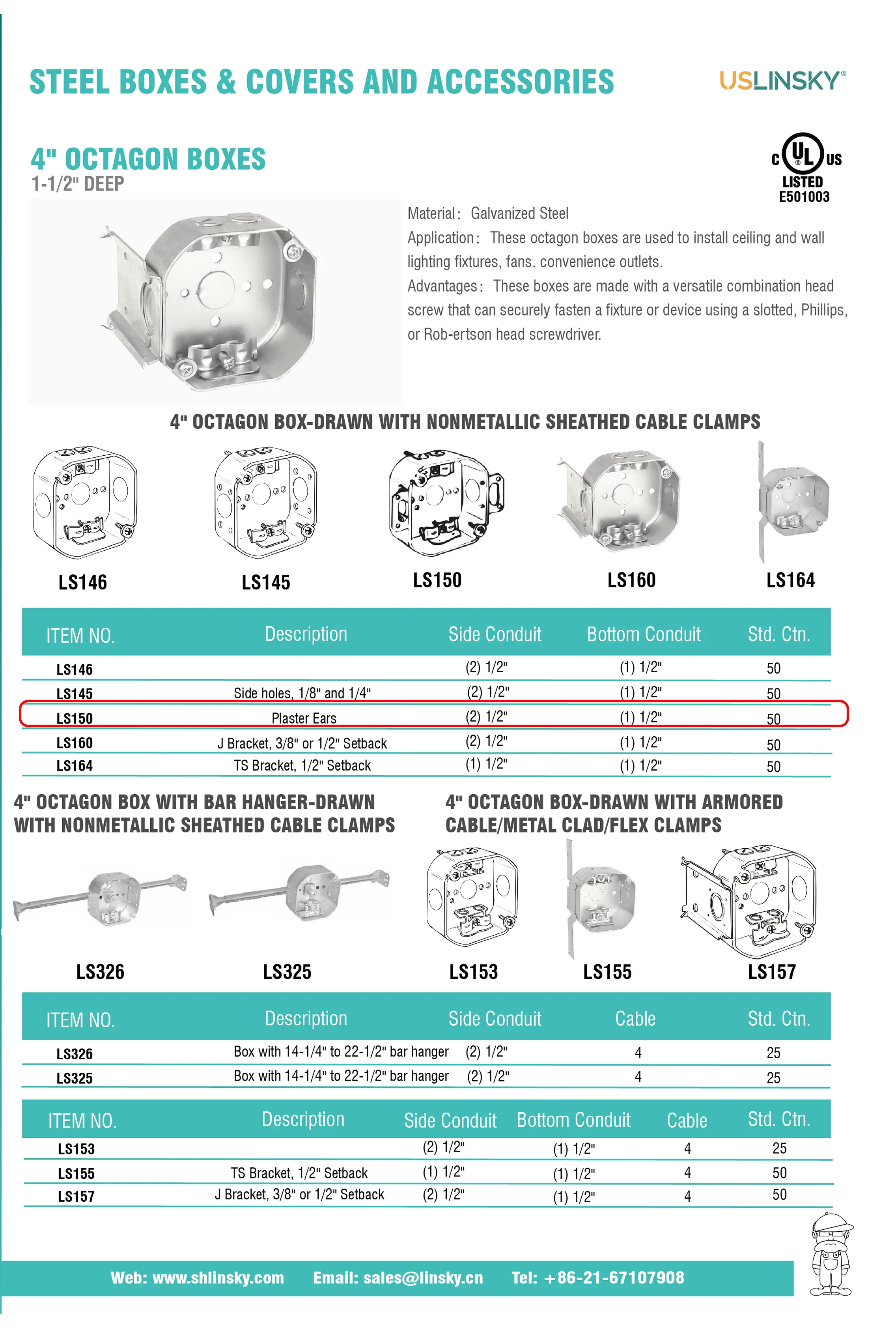 UL Safety Certified Metallic Outlet Boxes - Certificate No. E501003 - 20250328
