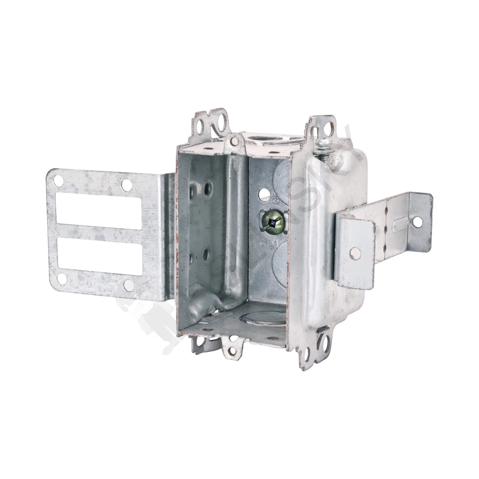 Gangable device box with concentric knockouts. “Wraparound” bracket for 2-1/2" and 3-5/8" steel studs. With integral support bracket.2-1/2" DeepMaterial: Galvanized Steel