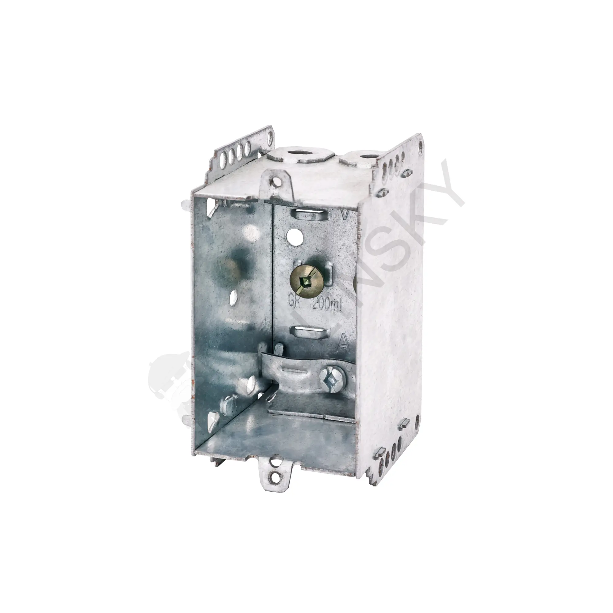 One-gang device box. Holding prongs and prepositioned depth tabs