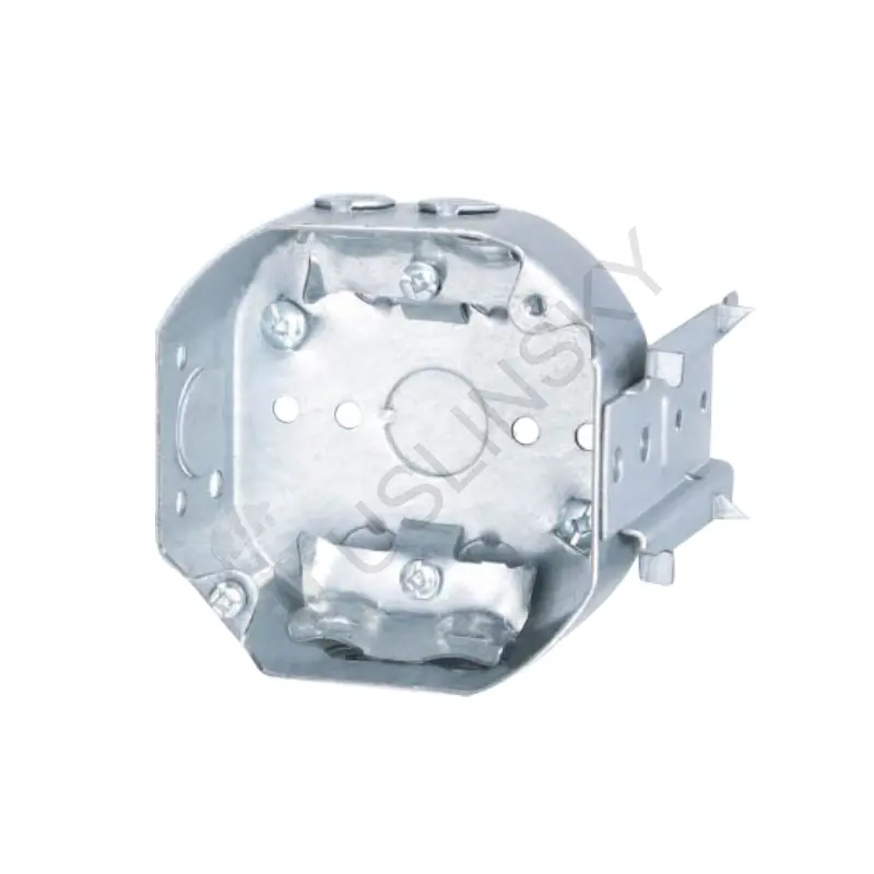 4" Octagonal metal box. With side bracket, holding prongs and prepositioned depth tabs