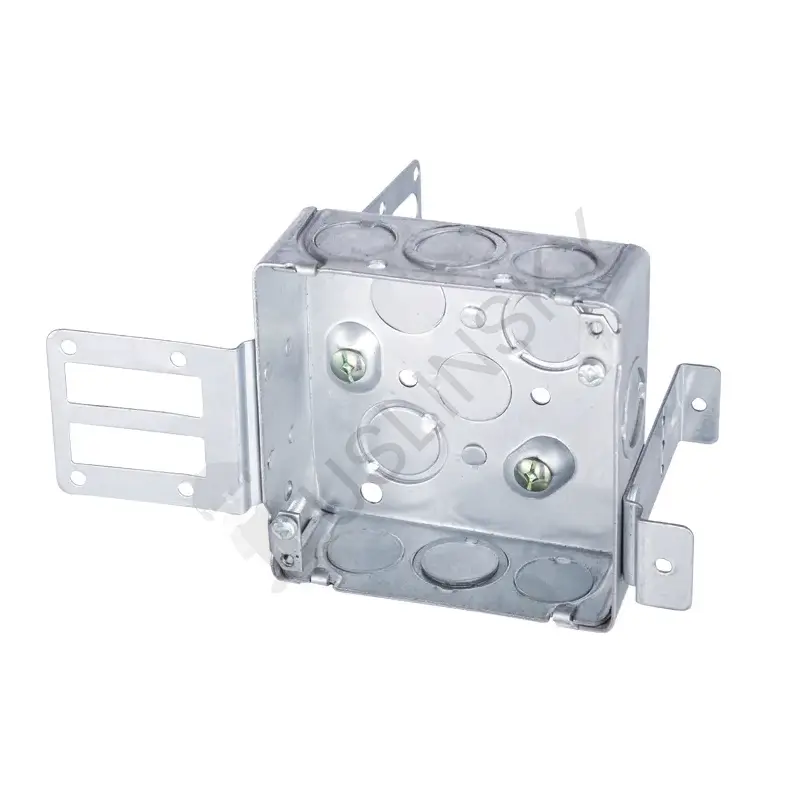 4" Square Shallow Wraparound Box for 2-1/2" and 3-5/8" steel studs. With integral support bracket1-1/2" DeepMaterial: Galvanized Steel