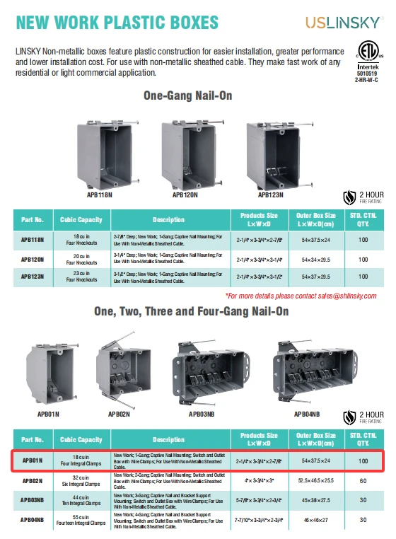 Non-metallic boxes feature PPO construction for easier installation, greater performance and lower installation cost.