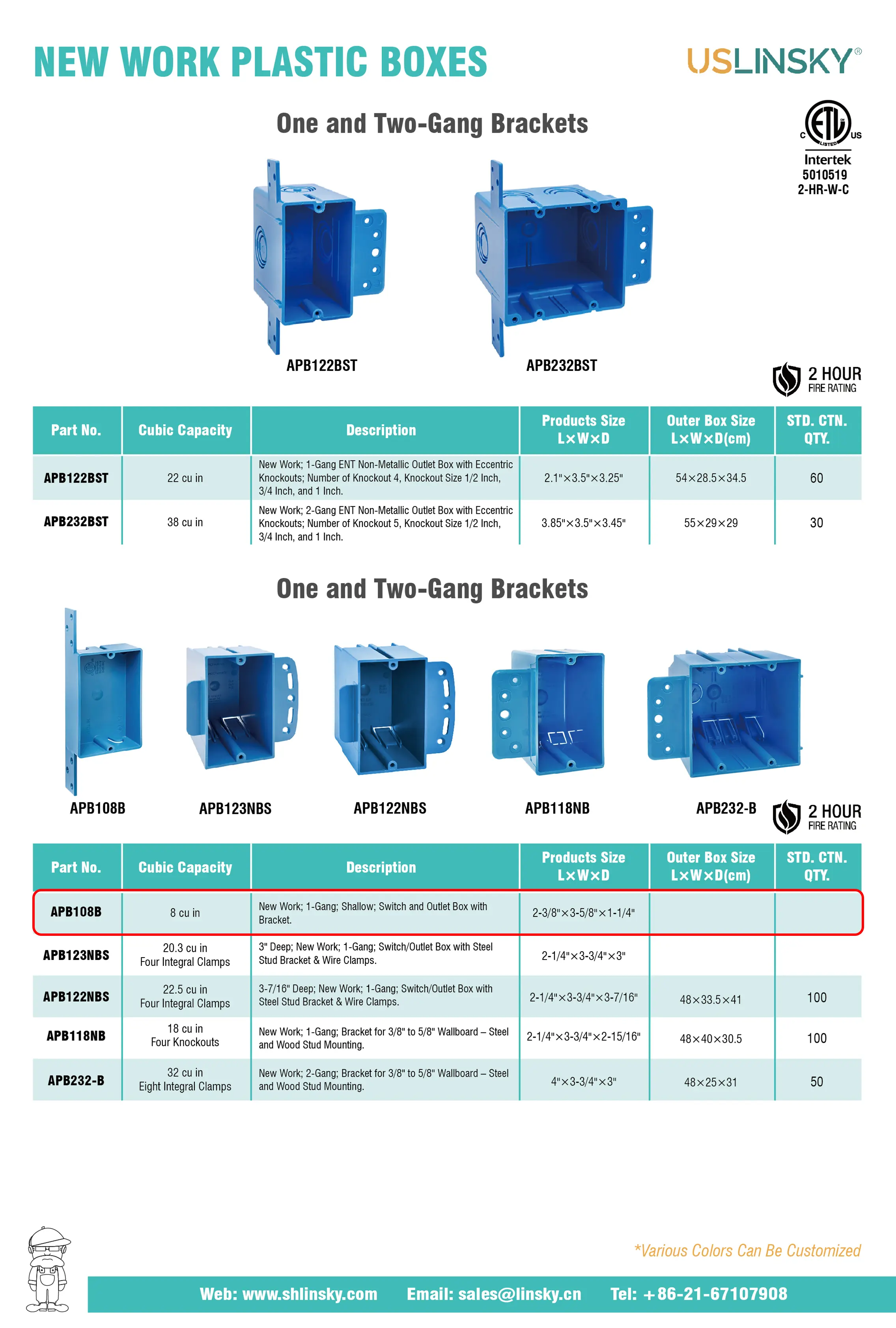 1 Gang Shawllow Plastic Box, Switch and Outlet Box with Bracket.