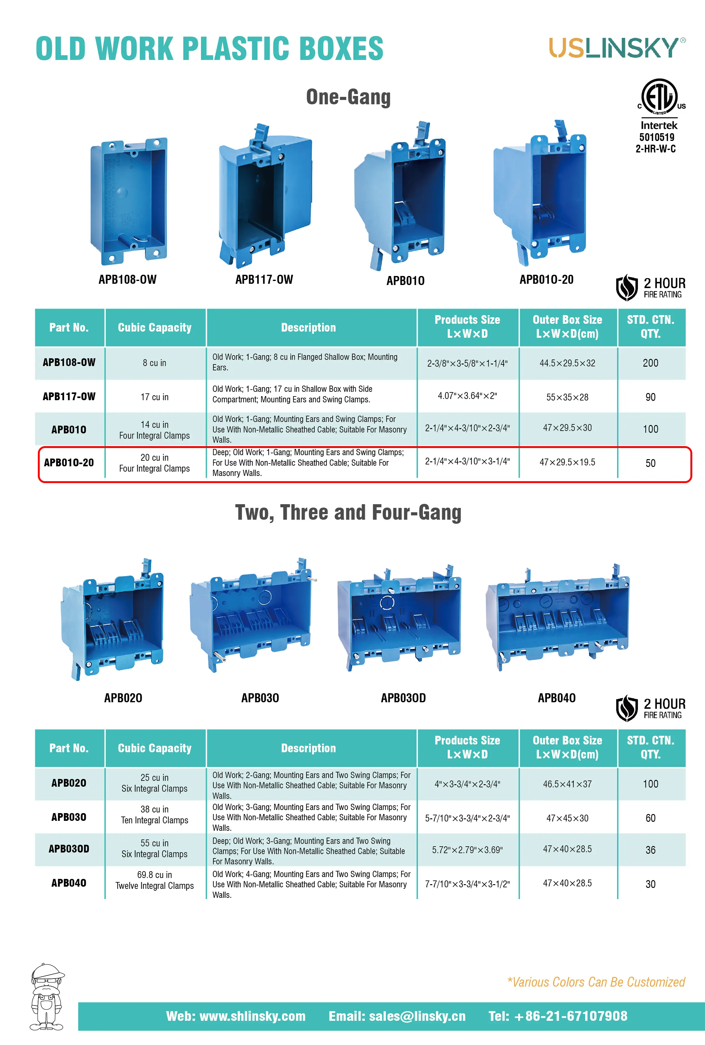 1 Gang Old Work Plastic Box with Mounting Ears and Swing Clamps