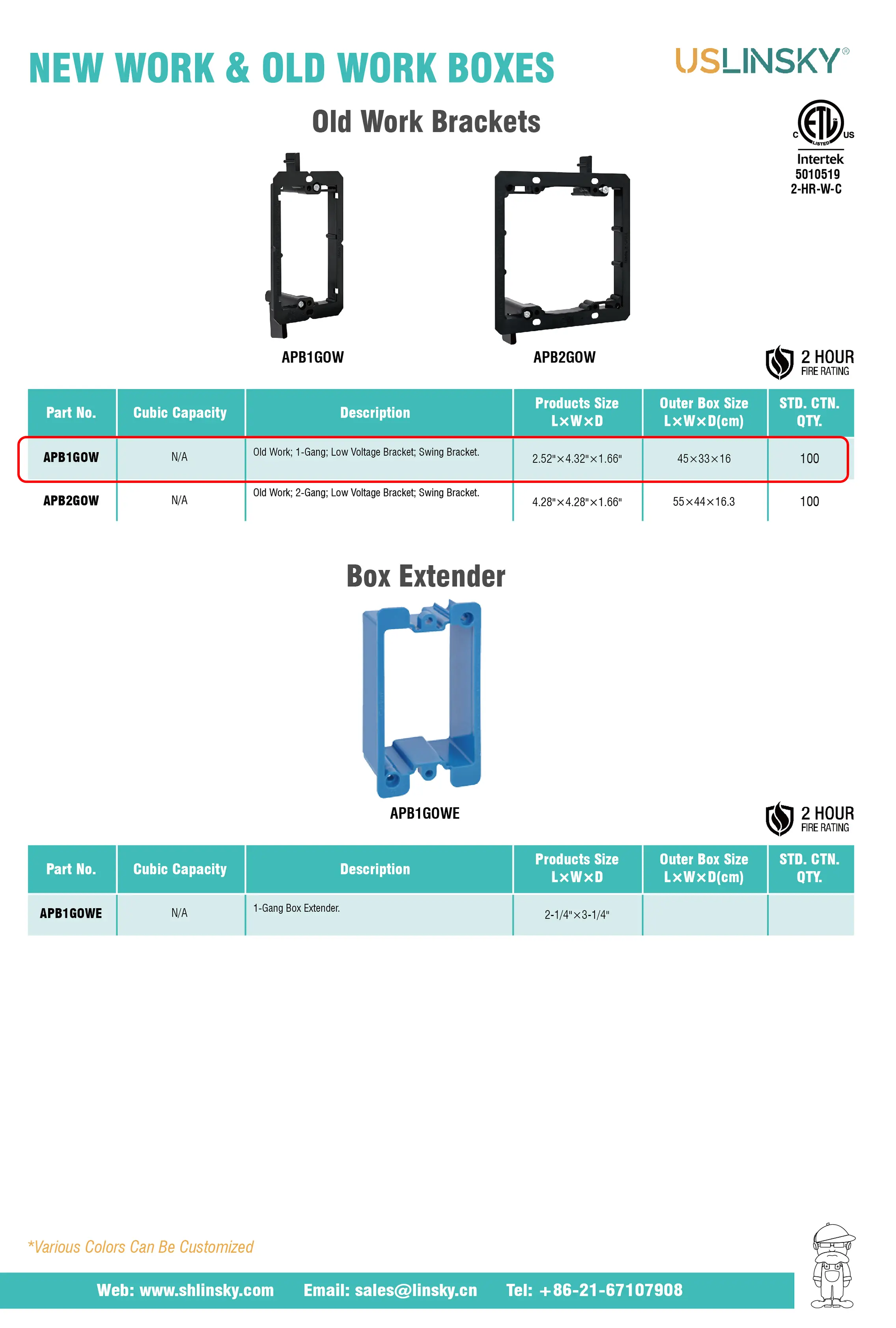 • All PPO boxes are ETL Listed and 2HR-W-C