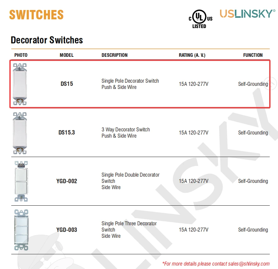 ·Suitable for houses, condos, apartments and most commercial areas that require only 15A switches such as offices, schools, stores, shops, restaurants, public facilities, and hotels. Ideal for bathroom fans and lighting control.