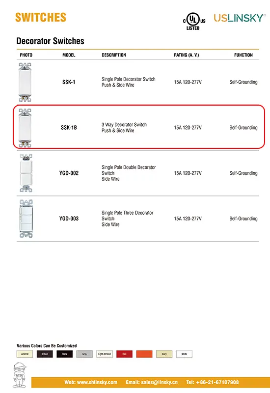 ·Suitable for houses, condos, apartments and most commercial areas that require only 15A switches such as offices, schools, stores, shops, restaurants, public facilities, and hotels. Ideal for bathroom fans and lighting control.