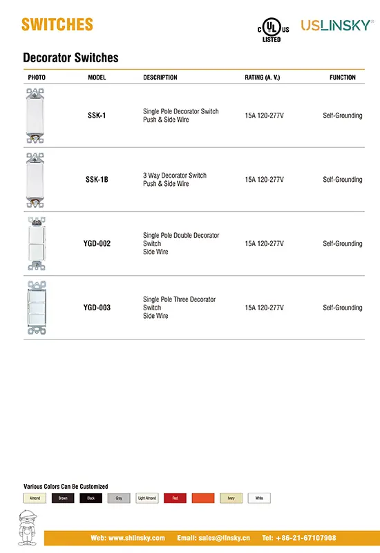 ·Suitable for houses, condos, apartments and most commercial areas that require only 15A switches such as offices, schools, stores, shops, restaurants, public facilities, and hotels. Ideal for bathroom fans and lighting control.