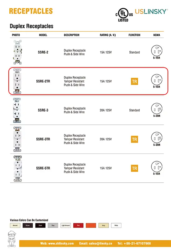 Tamper-Resistant designed cover full line of the outlets, with a variety of duplex, Decorator, and specification-grade receptacles in commercial versions and in residential versions as well.