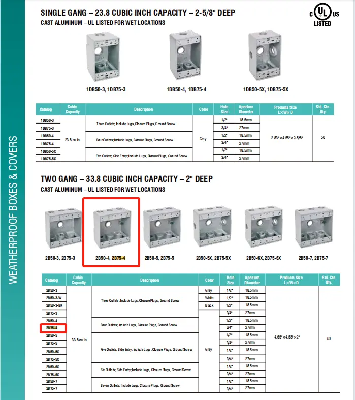 Four Outlets; Include Lugs, Closure Plugs, Ground Screw