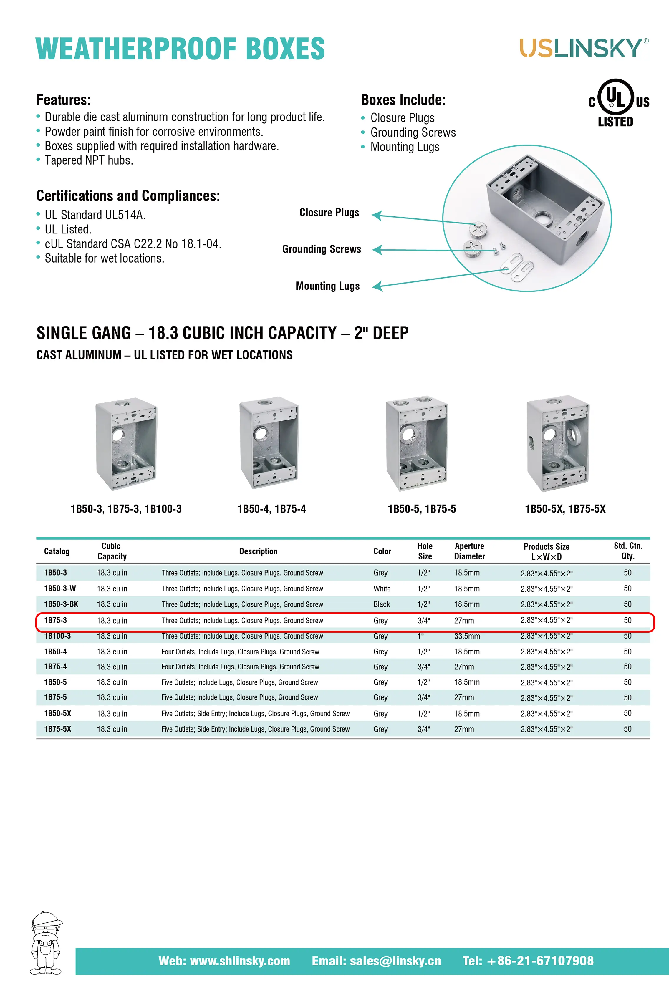 1 Gang Waterproof Junction Boxes with 3 Outlet Holes