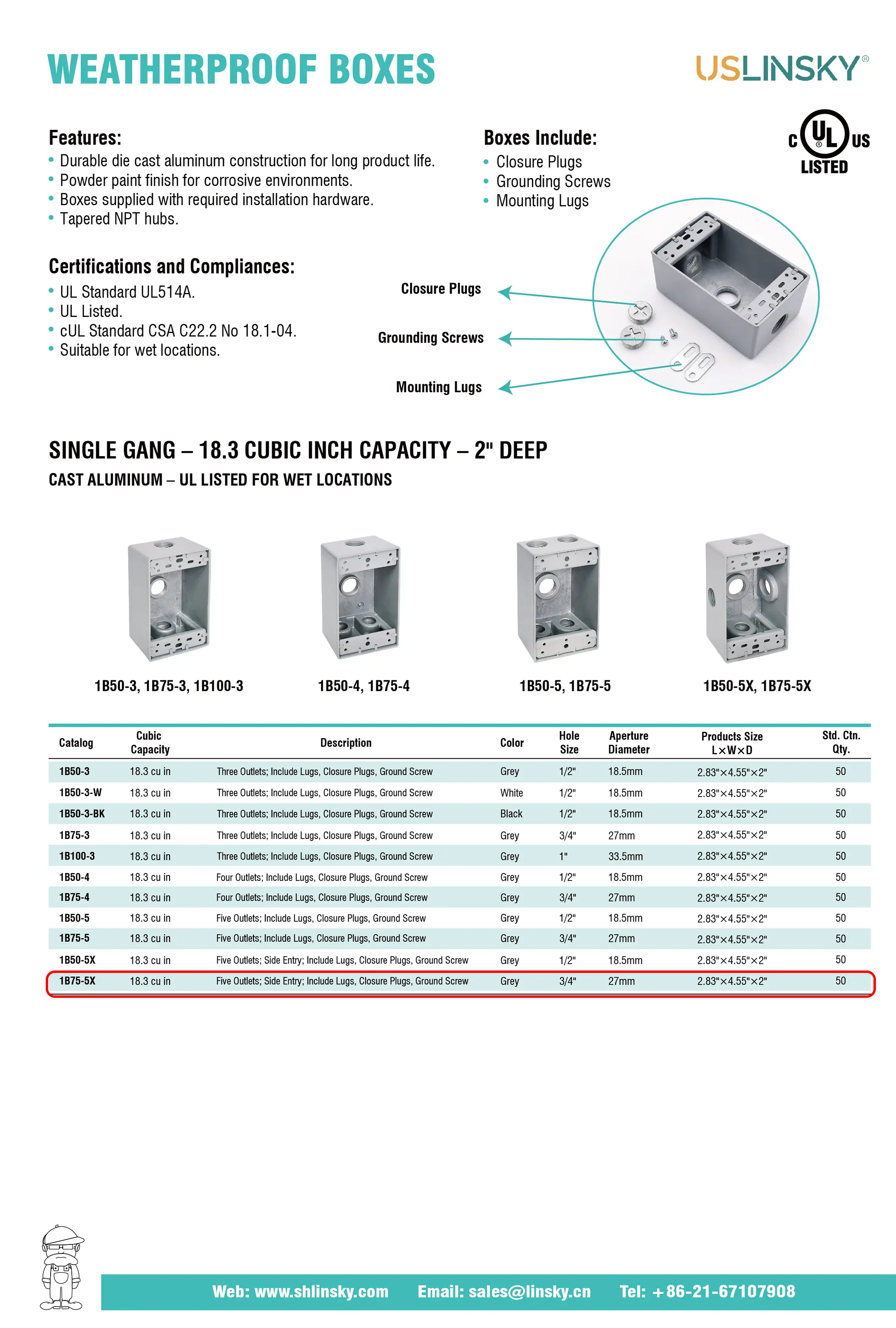 1 Gang Waterproof Junction Boxes with 5 Outlet Holes