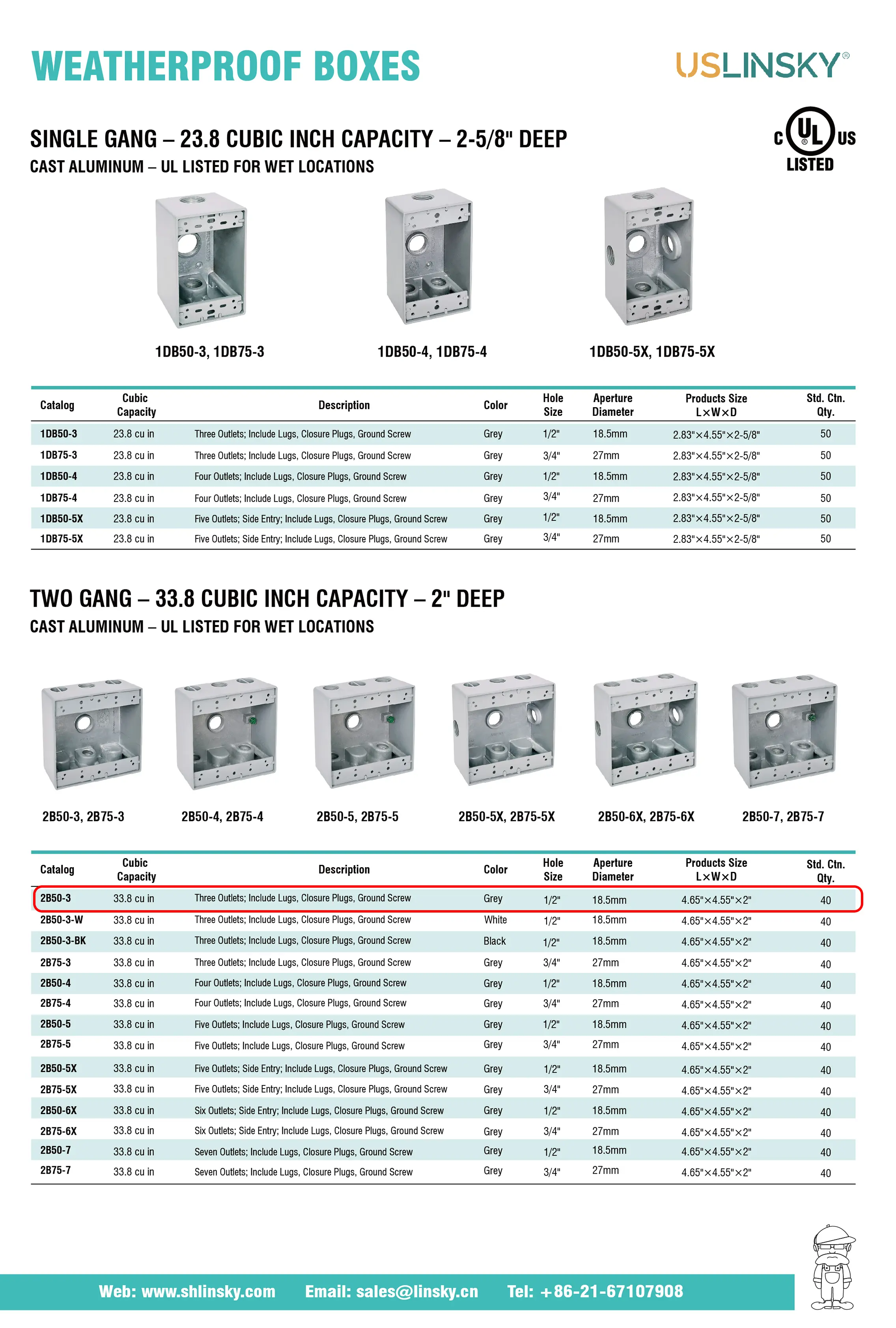 2 Gang Waterproof Junction Boxes with 3 Outlet Holes