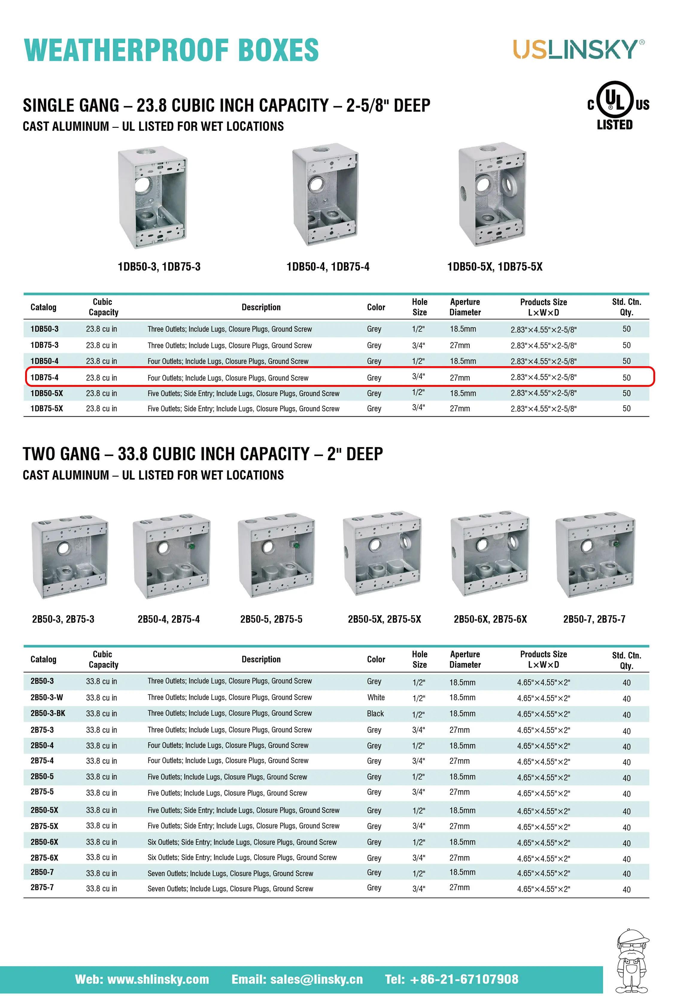 2 Gang Waterproof Junction Boxes with 4 Outlet Holes