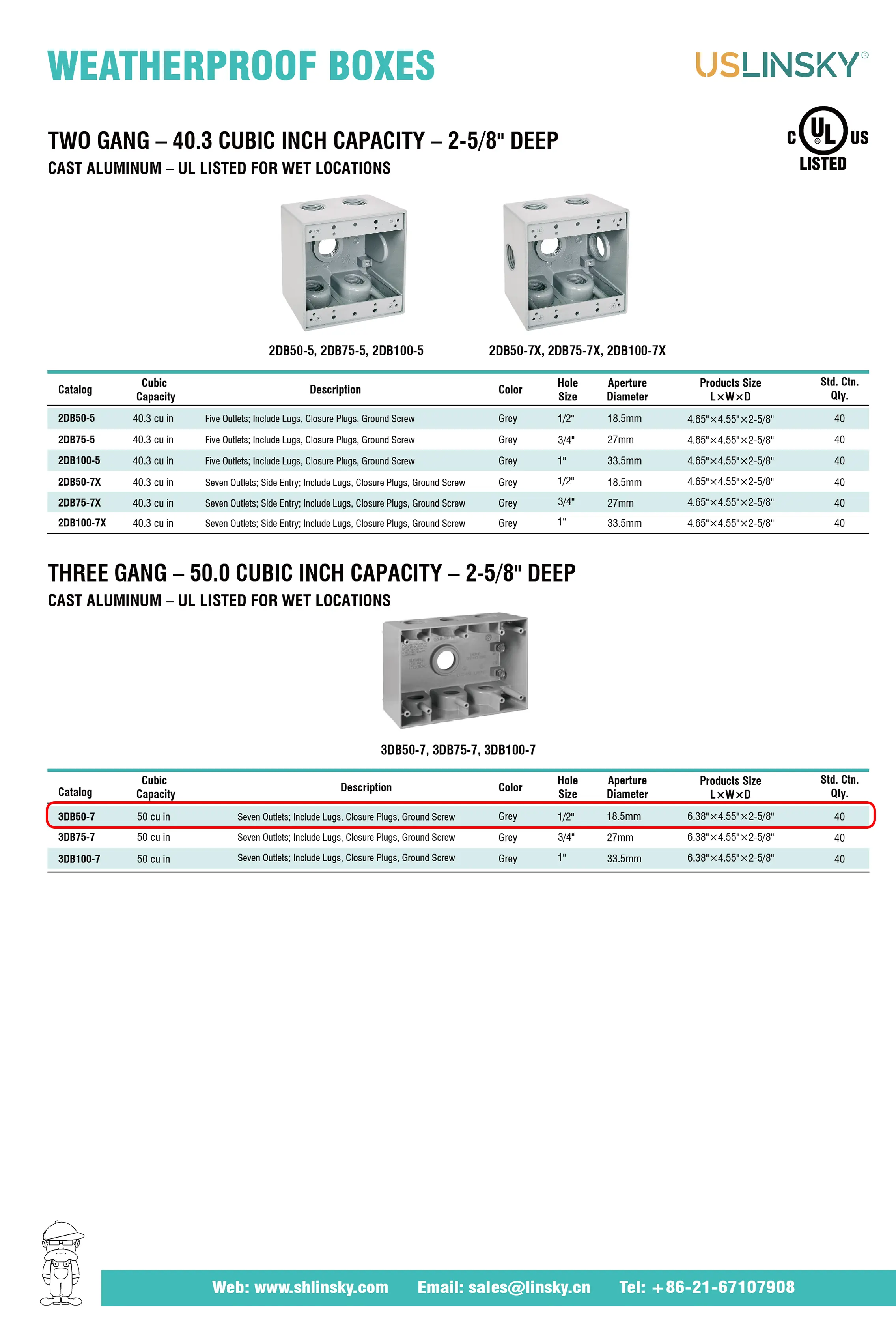 Deep 3 Gang Waterproof Junction Boxes with 7 Outlet Holes