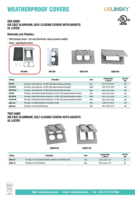 DIE CAST ALUMINUM, SELF-CLOSING COVERS WITH GASKETS
