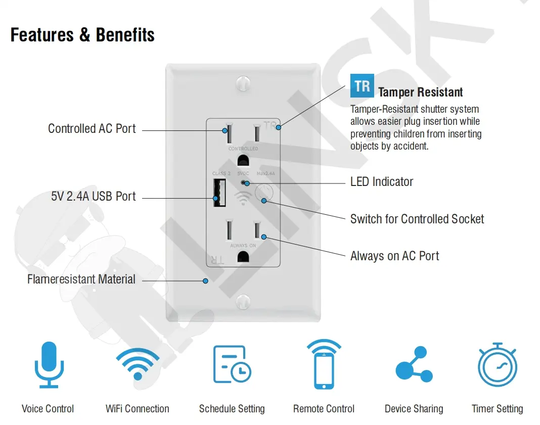 15A GFCI, NEMA 5-15 Tamper Resistant, 110V/60Hz, Self Testing
