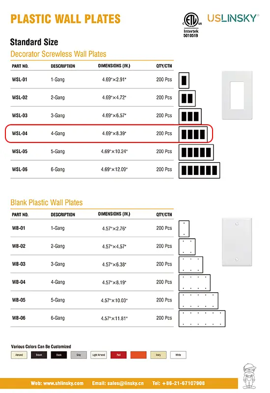 WSL-04 4 Gang plastic cover plate Screwless wall plate