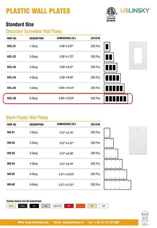 WSL-06 6 Gang plastic cover plate Screwless wall plate