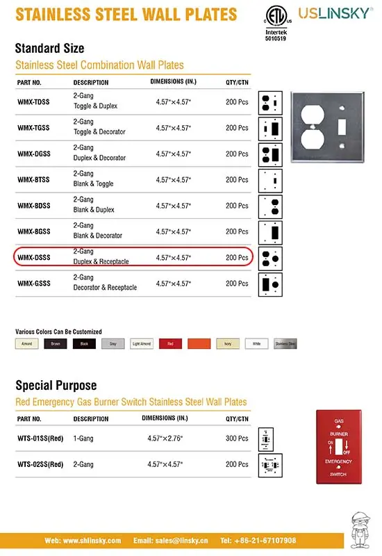 WMX-DSSS 2 Gang duplex & receptacle stainless steel wall plate