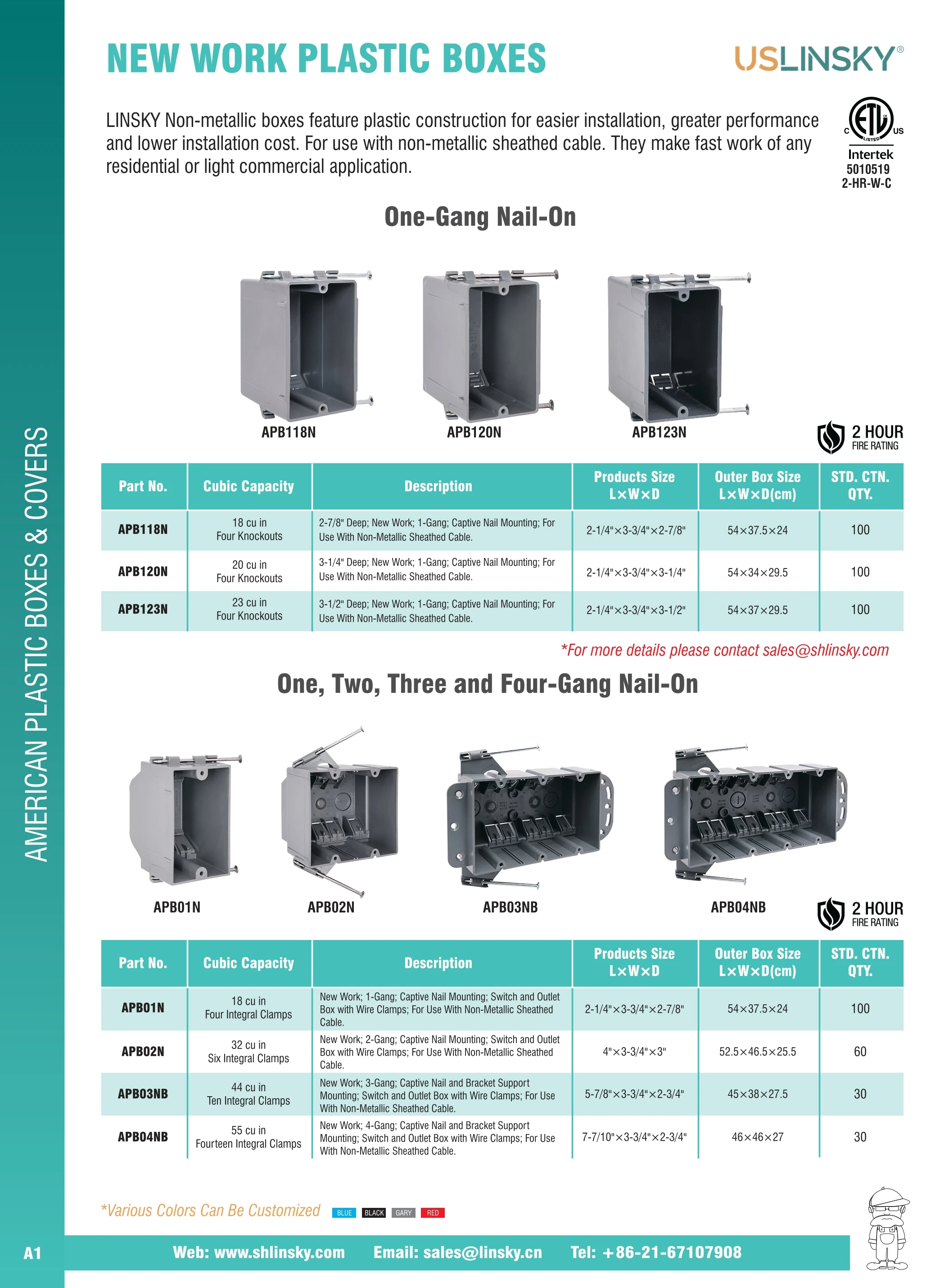 Although NEW WORK and OLD WORK plastic boxes are both electrical connection protection components, their design differences precisely adapt to the two scenarios of ”new construction“ and ”renovation.“ Linsky Electrical's full range of electrical plastic boxes, backed by ETL certification and featuring plastic material for easier installation, can provide reliable adaptation for both system wiring in new projects and partial upgrades in old house renovations.
