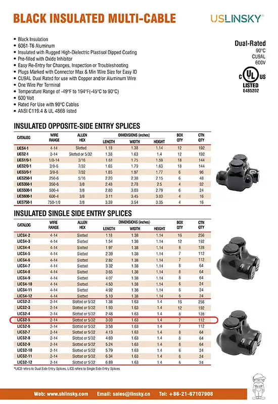 #2-14 INSULATED SINGLE SIDE ENTRY SPLICES 5 ports