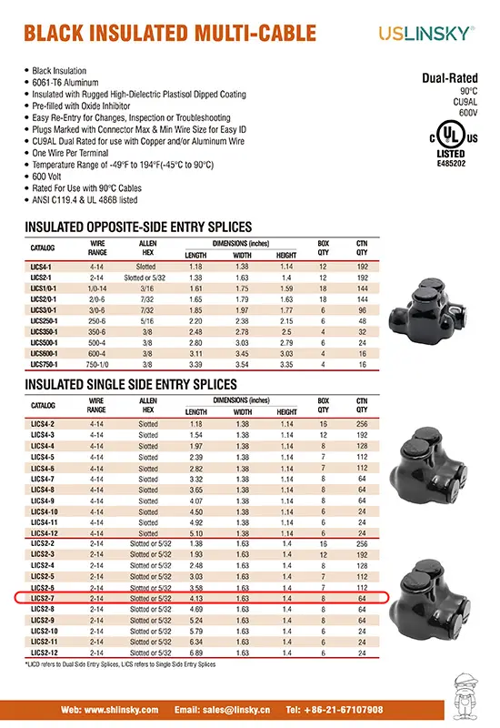 #2-14 INSULATED SINGLE SIDE ENTRY SPLICES 7 ports