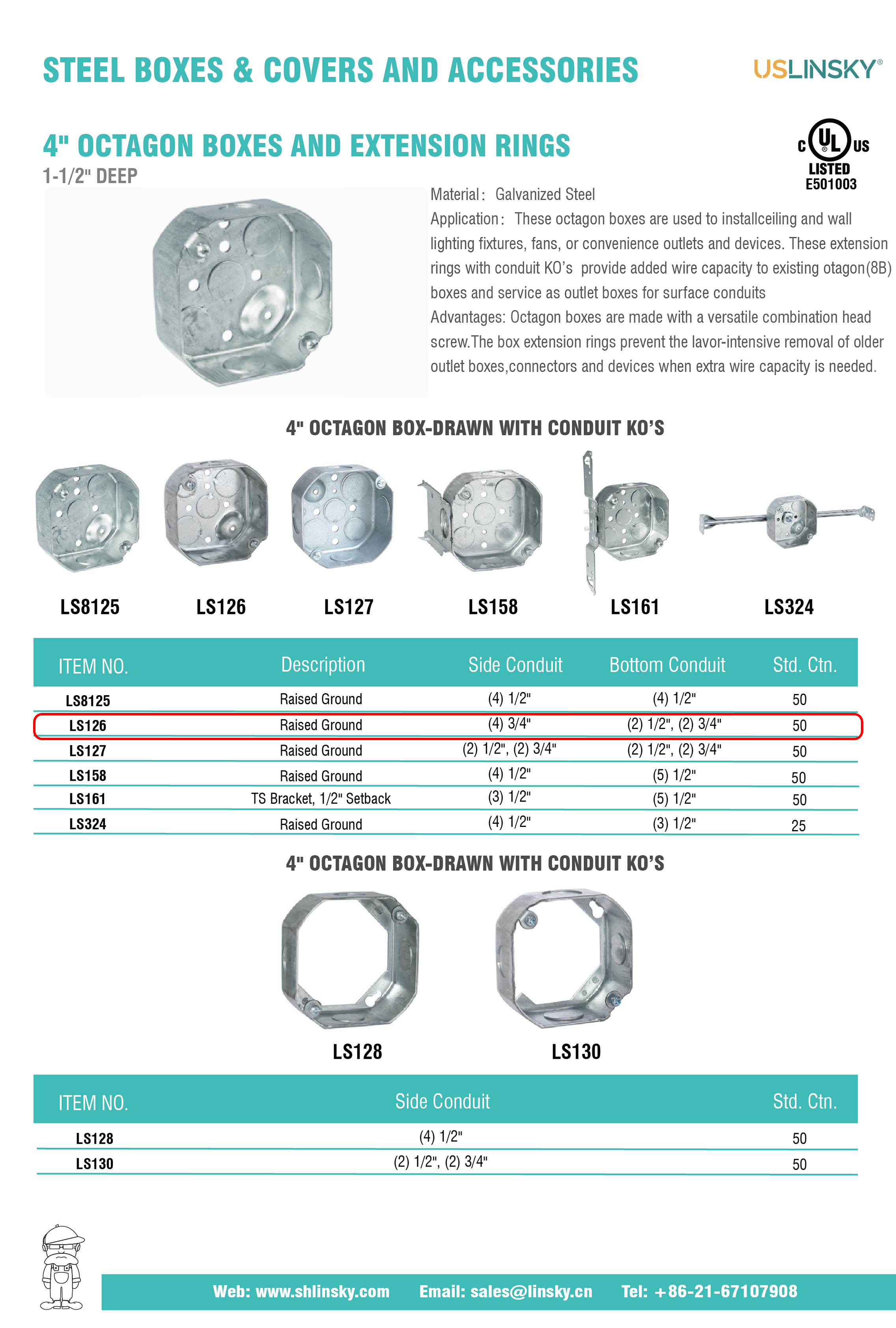 UL Safety Certified Metallic Outlet Boxes - Certificate No. E501003 - 20250328